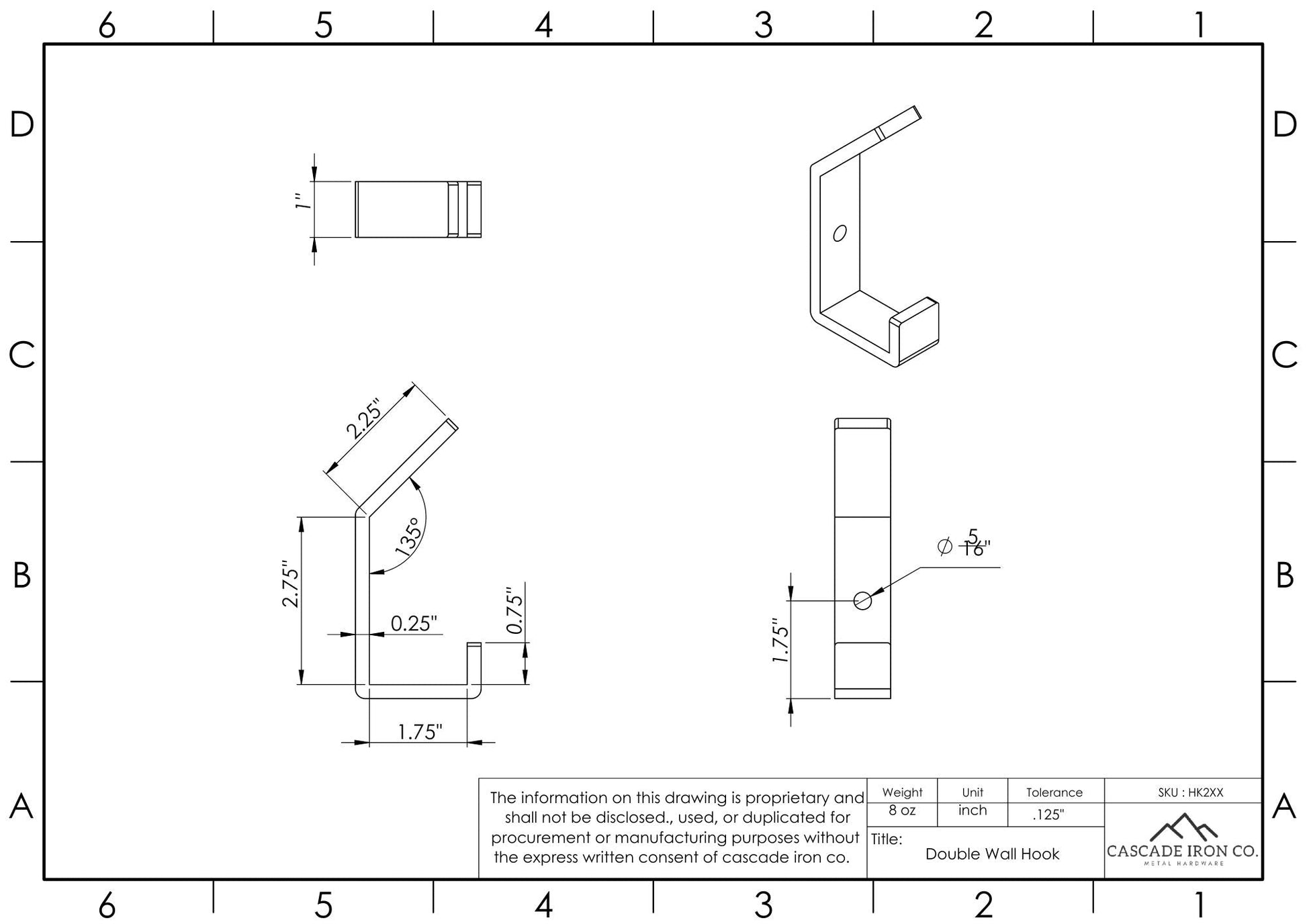 Our wall mount double J Hook is the perfect blend of style and functionality. With its sleek design and durable construction, this sturdy hook provides double the storage for your coats, hats, bags, and more.
