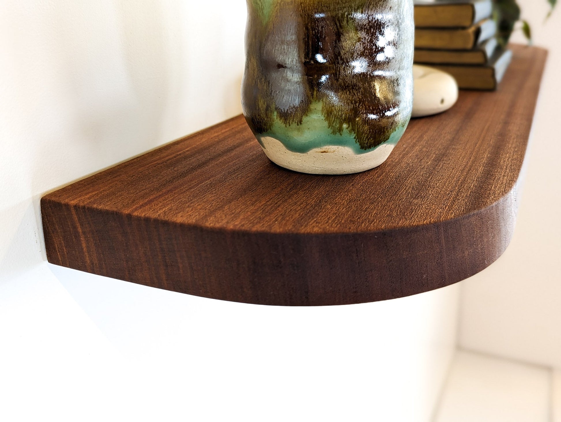 Immerse yourself in the NookWoodworking collection, handcrafted in Brooklyn, New York, USA. Elevate your space with our exclusive line of custom-made floating wall-mount shelves, meticulously designed with gracefully rounded corners, seamlessly blending functionality and style. Explore the captivating allure of solid oak or opulent richness of mahogany as you discover our thoughtfully curated selection of minimalist shelf designs.
